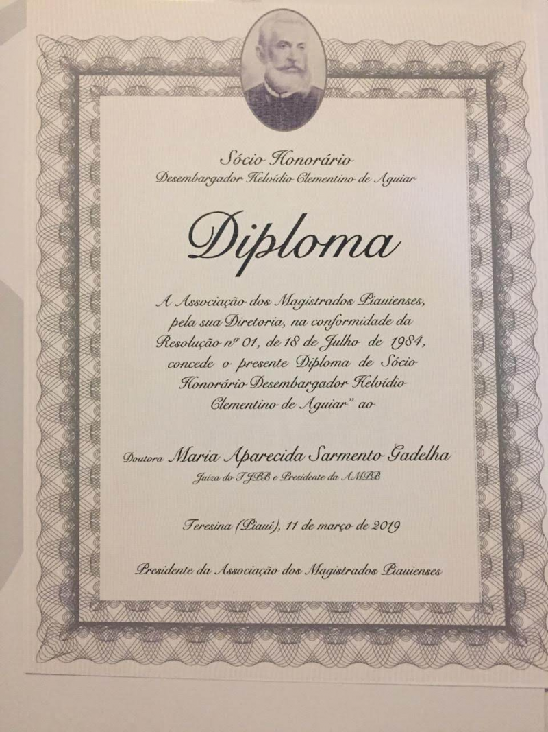 “Estou imensamente honrada com a concessão desses título e medalha e também por haver desfrutado da receptividade dos colegas piauienses e de momentos de profícuo aprendizado no Fórum Amapi, em que a Entidade e seus associados discutiram sobre ‘A Magistratura e as Novas Demandas da Justiça’. Parabéns à Associação piauiense, pela excelência na representação da magistratura daquele Estado nesses 60 anos de existência!”, comentou a juíza Aparecida Gadelha.